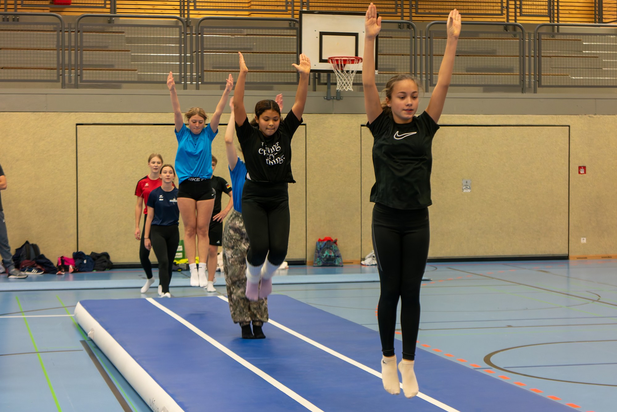 Am letzten Sonntag im Oktober trafen sich 28 TrampolintrainerInnen aus ganz Niedersachen zu einem Lehrgang, der unter anderem der Lizenzverlängerung dientEs wurden auch einige Aktive mitgebracht, damit neue Techniken zum Erlernen verschiedener komplexer Sprünge, direkt vorgeführt und von den anwesenden Trainern ausprobiert werden konnten. Außerdem fand ein reger Austausch untereinander statt, sodass man nicht nur vom Referententeam, sondern auch jeder von jedem lernen konnte.