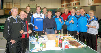 Es hat schon Tradition, wenn die 3. Herren gegen Hessisch Oldendorf spielt....Am Freitag, den 13. (!!!) spielten neben der 3. Herren auch noch die 1. , die 4. Herren und außwärts die 1. Damen. Alle konnten Pluspunkte einfahren. Beim Zusammentreffen der 3. Herren mit den netten Leuten aus Hessisch Oldendorf gibt es von beiden Seiten zum Abschluss immer leckeres Essen. Dieses Mal waren wir der Ausrichter und Gerd hatte ein opulentes Buffet aufgebaut, was nicht nur für die 3. plus Gäste gereicht hat. Wie alle auf dem Foto sehen können, ist nicht nur der Kampf am Tisch wichtig, sondern auch der Spaß und das gemütliche Zusammensein. In dieser Kombination macht Tischtennis einfach nur Spaß!!!